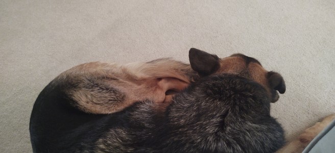 But Odin, this giant German Shepherd who’s almost my height when he jumps up, began guarding me when he met me. I didn’t know that’s what he was doing, but he laid in front of the doors of the rooms I was in. And then he laid in front of the spots I sat down in. And he slept on my side of the room between me and the door. All of that was enough to endear him to me, whether or not I ever showed affection like normal dog people. You know who you are, baby-talking, pet-cuddling dog lovers.